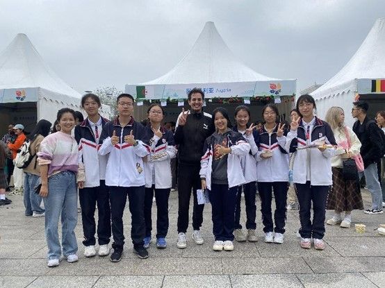 活动中,来访的老师们和同学们参与了盛大的开幕式。随后同学们来到各国展位,积极与全球各地的留学生交流互动,深入了解不同国家的文化和习俗。此次校际交流活动深化了两校友谊,用一场精彩的文化盛宴向北二外附中的同学们展示了美丽而充满朝气的西财校园,让他们感受到了多元文化融合互鉴的大学氛围。