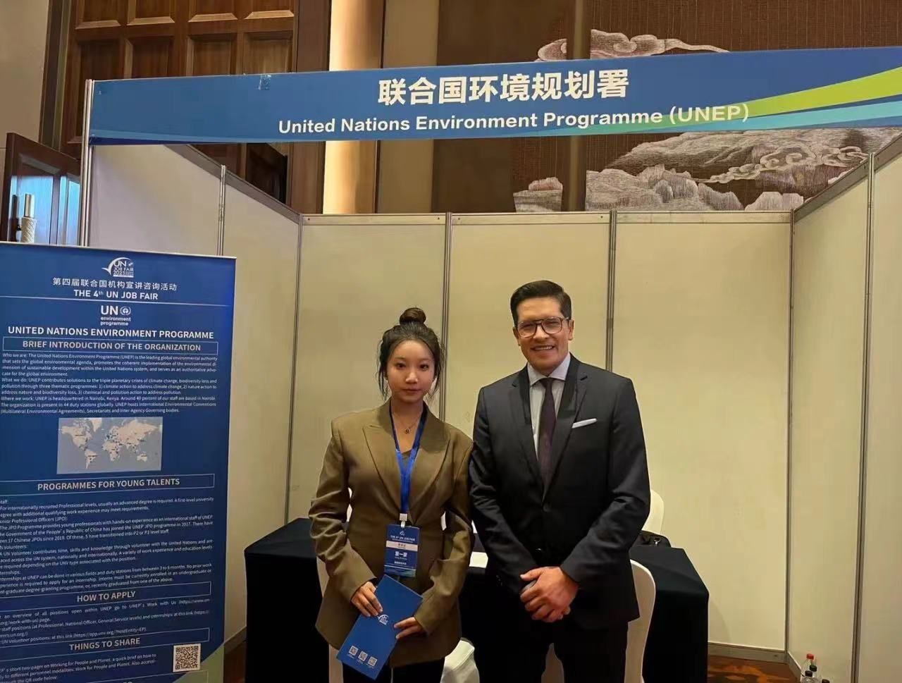 第三位优秀代表是来自2022级信息管理与信息系统专业的董一蒙同学。她于2023年被国家留学基金委员会选派,参加了在西安举办的第四届联合国宣讲咨询活动。