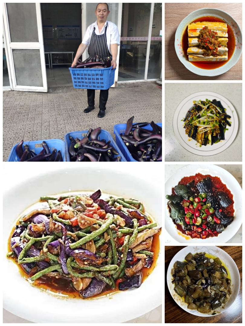 茄子采摘后,我院劳动实践小组同学代表学院赠送了50多斤茄子给学校后勤食堂,与全校师生分享劳动的果实。学院选修了《果蔬技能实训》课程的同学,把新鲜的茄子带到了烹饪技能实训基地,把茄子做成了一道道美味佳肴。同学们通过全程参与种、摘、洗、切、烹所有过程,感受到自己动手的快乐,切身体会劳动的意义。