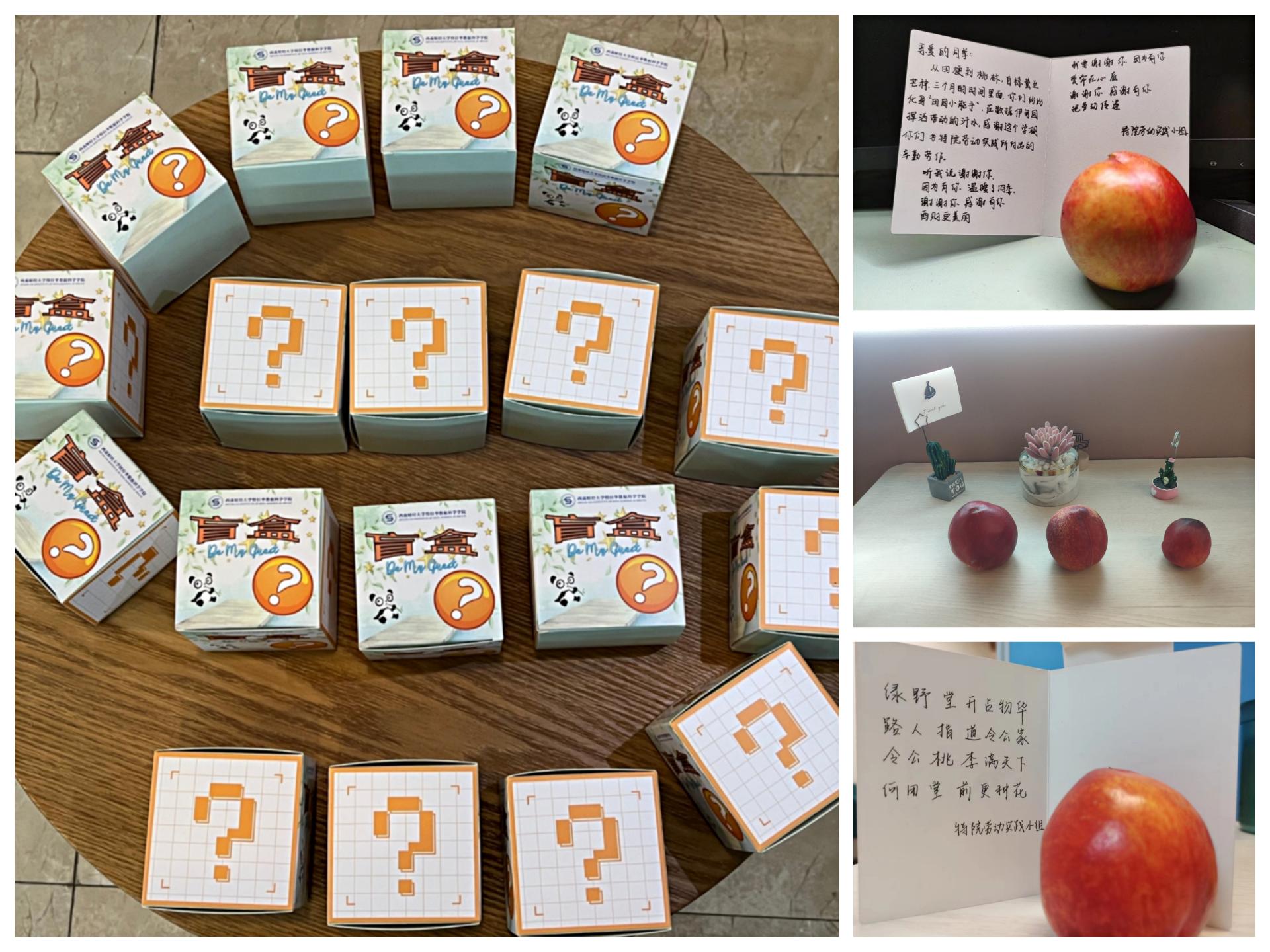 从惊蛰到芒种,特院劳动实践活动的开展离不开老师的耐心指导和学生的辛勤付出,为感谢老师和学生的劳动奉献,在“共享劳动果实,传承劳动精神”劳动教育活动中,特院劳动实践小组别出心裁定制了水果盲盒,将收获的桃子装进盲盒中,由学生写好感恩卡片,赠送给学院老师,表达学子对老师们的感恩之情。
