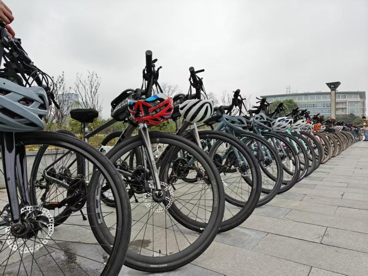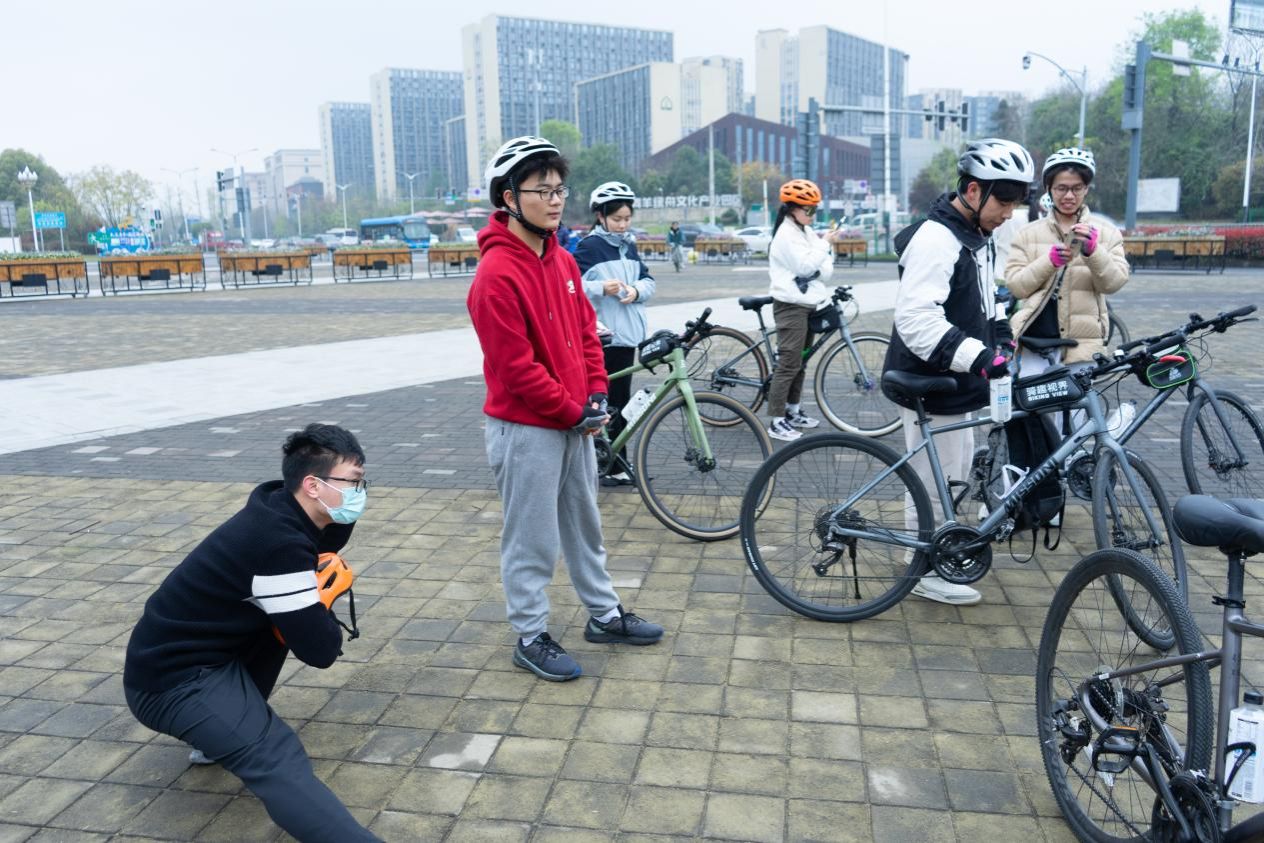 在专业骑行人员讲解完注意事项和做完热身活动后,33名特院学子在学院院长杨石磊、副院长兼党总支副书记王彬宇,以及特拉华大学陶庆久、曹锦薇、张乐婷等老师的组织和带领下从学校南门出发,开启了本次的骑行之旅。
