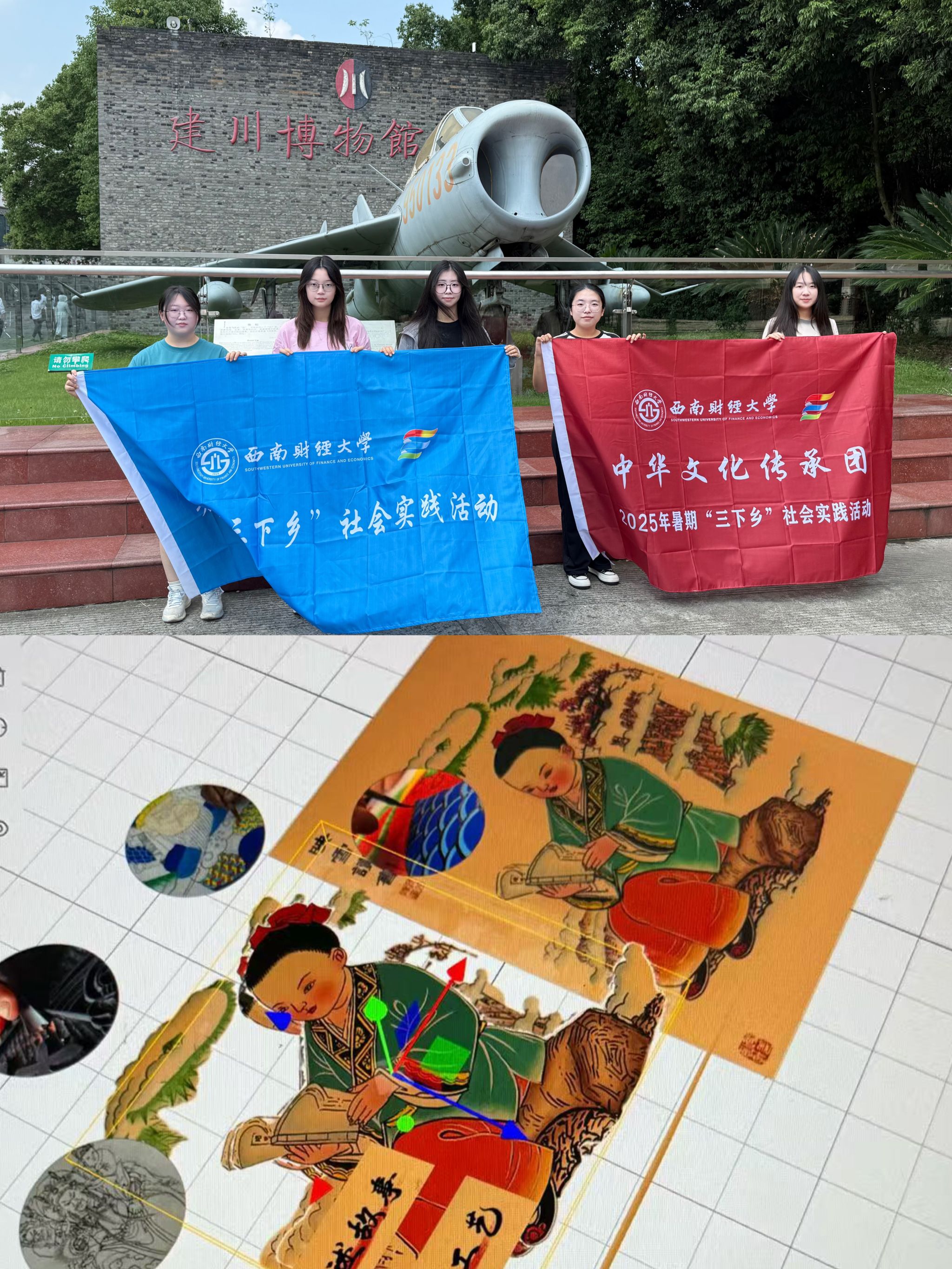 “赤韵薪传”实践队以“数字活化非遗薪火传,红色基因赋能时代新”为方向,赴建川博物馆、绵竹年画村、平乐古镇及陈毅故居,开展红色非遗数字化传承实践。团队建立文物数据库,开发AR程序实现年画“扫图识史”,记录瓷胎竹编技艺,并启动《红色非遗图鉴》编撰工作。实践全程通过微信公众号、小红书等平台传播,获青聚锦官城等媒体报道。
