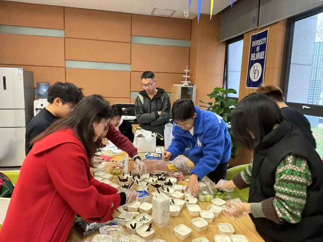 活动前期,工作人员齐心协力共同制作蛋糕,用于奖励活动中表现优异的学子。