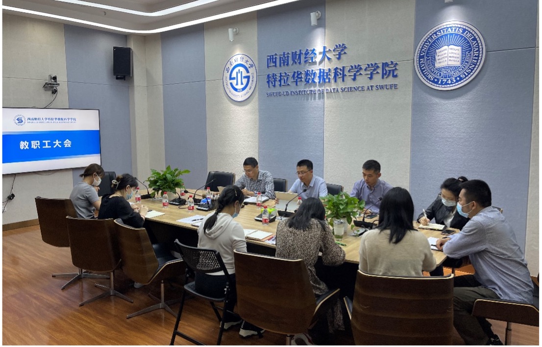 在格致楼G101视频会议室召开教职工大会,学院全体教职员工参会,党总支书记王学钊主持会议。
