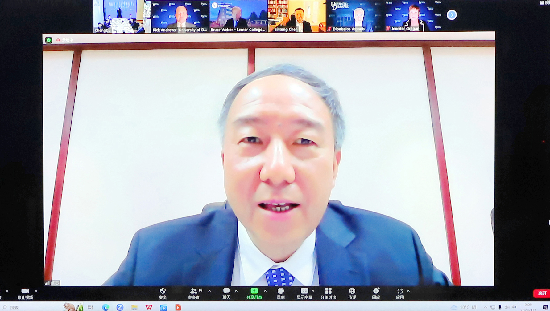 联合管理委员会主席卓志校长在线发表致辞,表示特拉华大学是我校非常重视和珍惜的合作伙伴,两校三年来密切协作克服疫情带来的困难,保障了各项教学任务顺利完成,学院发展取得重要突破。当前新一轮科技革命和产业变革孕育兴起,特别是AI技术发展迅猛,卓志介绍了我校以科技创新为“新财经”战略升级赋能,他希望学院找准与“新财经”战略升级的结合点和切入点,突出数据科学培养特色,努力把学院打造成为“新财经”人才培养的国际化示范区。