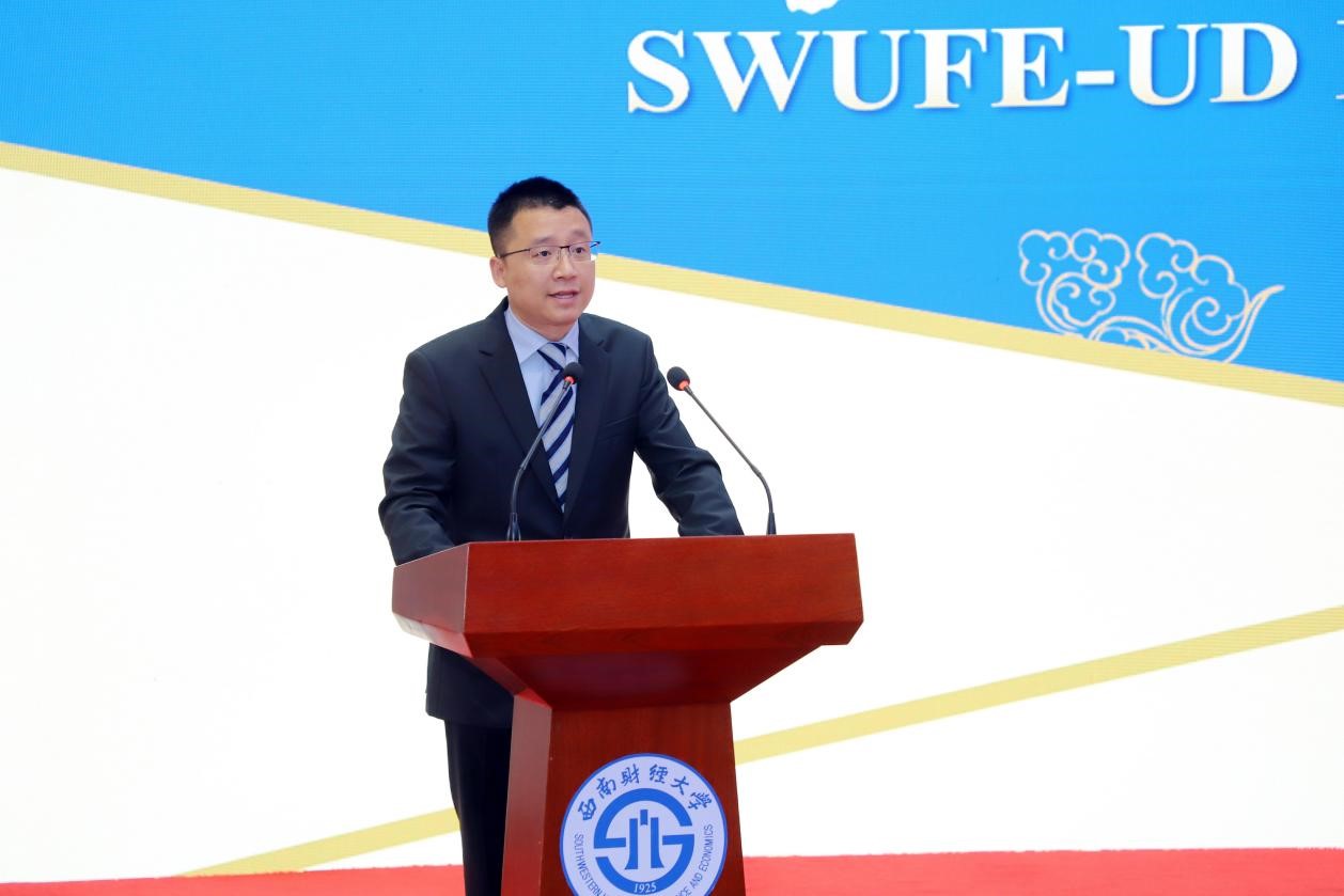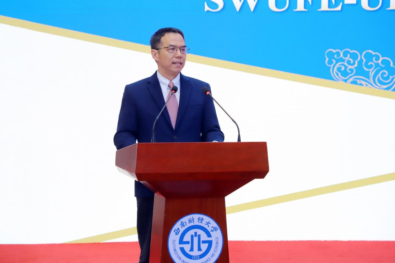 是目前国内唯一以数据科学为培养特色的中外合作办学机构,汇集中美两校优质教育教学资源,是学校实施“新财经”战略,深化经管学科与理工学科交叉融合,大力培养具备扎实的数据科学理论基础和广阔的数据应用视野、兼具民族精神和全球胜任力的新时代复合型人才的重要平台。他结合世界之变、时代之变、历史之变,希望同学们勤于学习,提高识变应变的适应性;乐于交流,认识美美与共的多样性;勇于奋斗,锻造锲而不舍的坚韧性。他祝愿同学们的西财时光能成为最值得怀念的青春岁月!