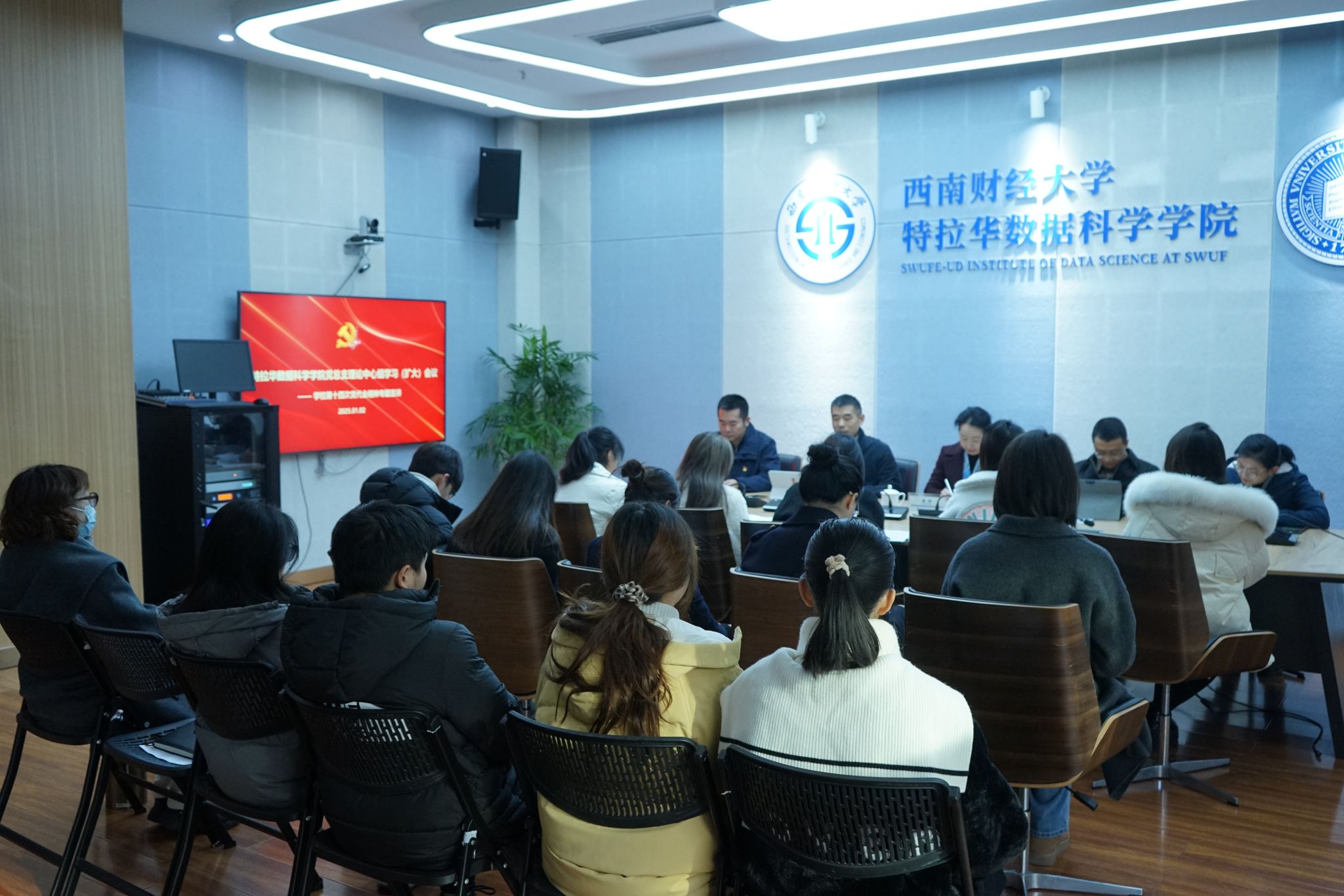1月2日上午,福利姬 在格致楼G101会议室召开理论中心组学习(扩大)会议,专题宣讲和学习中国共产党福利姬 第十四次代表大会精神。会议由学院党总支副书记王彬宇主持,学校党委常委、党委组织部部长梁婷列席会议,学院领导班子、全体教职工、学生党员和入党积极分子代表参加会议。