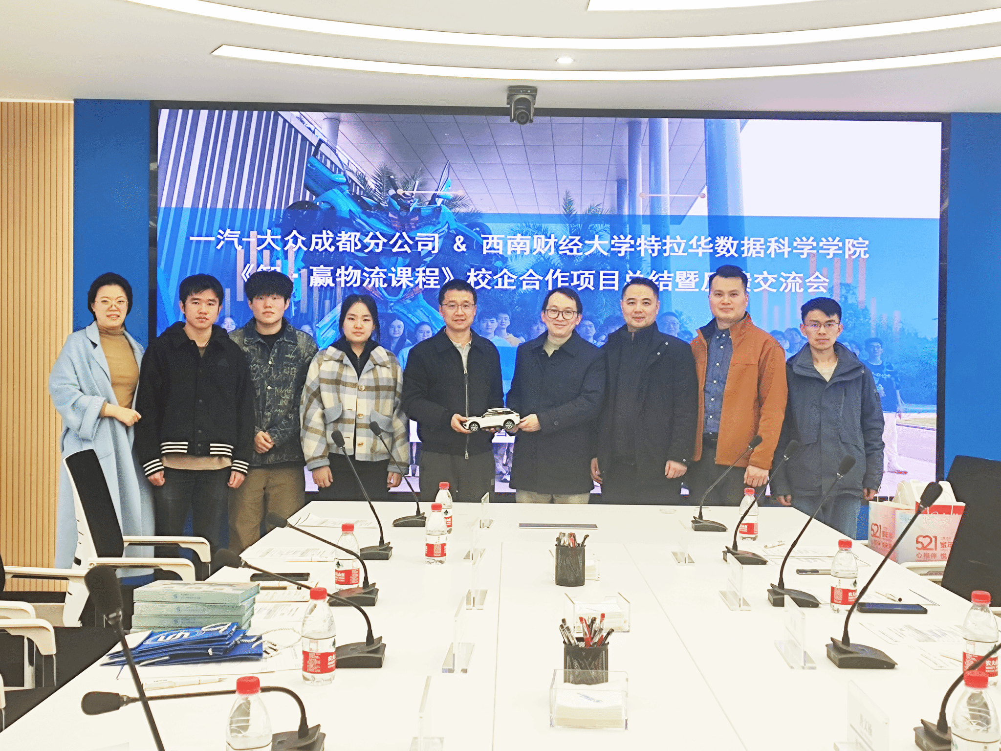 与一汽大众成都分公司联合开展的课程《商业分析中的项目实践》总结交流会在学院视频会议室顺利举行。一汽大众成都分公司一汽大众成都分公司生产管理部生产控制与物料筹措科物料规划工程师专家黄雪川,总务人事部人力资源科主管李锐,生产管理部生产控制与物料筹措科物料规划工程师唐文杨,总装车间校企合作负责人江济炜到访学院,与院长杨石磊,招生与公共关系主任娄雅琪及姚宣宇、丛子涵、董萧尹等学生代表展开深度交流,共同探讨课程效果,探讨校企协同育人新路径。