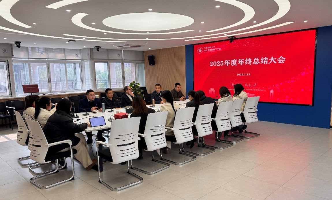 在通博楼D207会议室举行2025年度年终总结大会。学院领导班子和全体教职工参加本次会议。党总支副书记王彬宇主持会议。