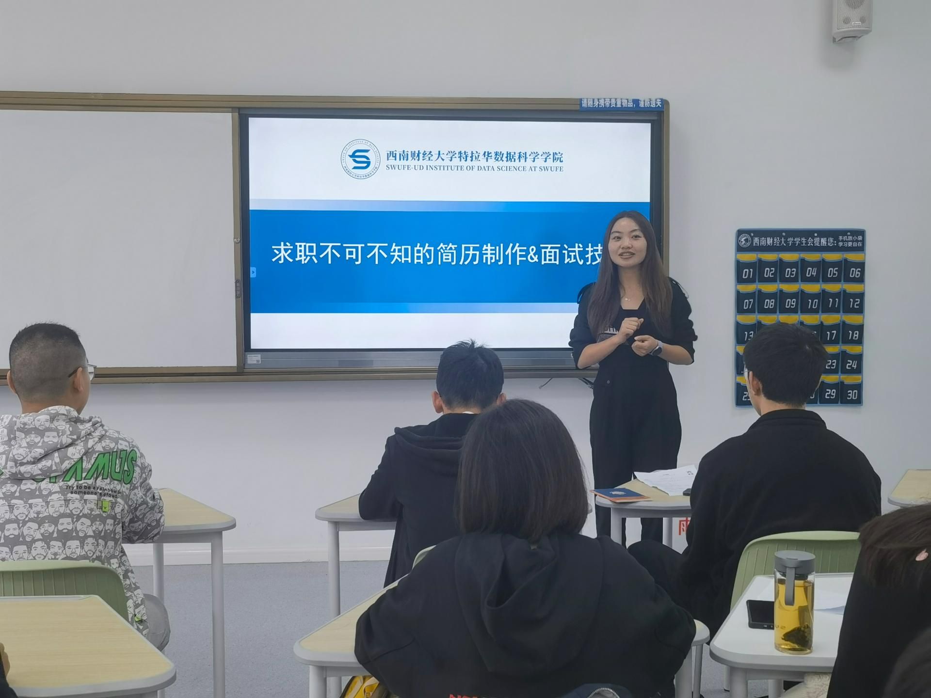 2023年10月31日,学院在经世楼B202举行了简历制作、面试技巧培训,特邀高顿财经人力资源总监、互联网及房地产行业资深猎头涂晓孟女士为同学们开展了题为“求职不可不知的简历&面试技巧”培训。会上,涂晓孟针对简历制作做了详细讲解,为同学们揭秘了面试通关小技巧。现场还开设简历门诊,手把手指导同学们修改自己的简历。