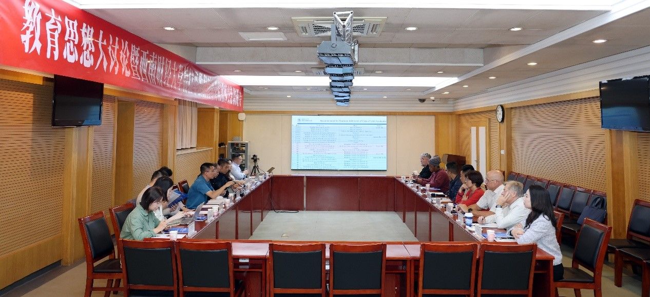 在腾骧楼101会议室举行教育思想大讨论暨教师交流(培训)会,中外双方任课教师齐聚一堂,围绕教师教学情况和学生学习情况展开深入交流。福利姬